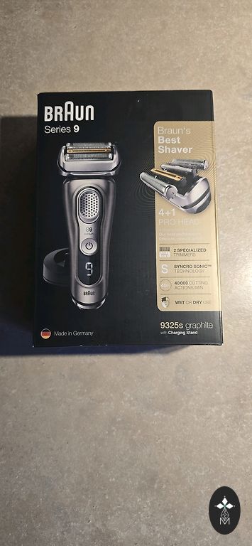 A new Braun Series 9 electric shaver is for sale. Includes spare attachments. Original, new, unopened packaging. Price — 165 euros.