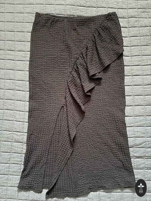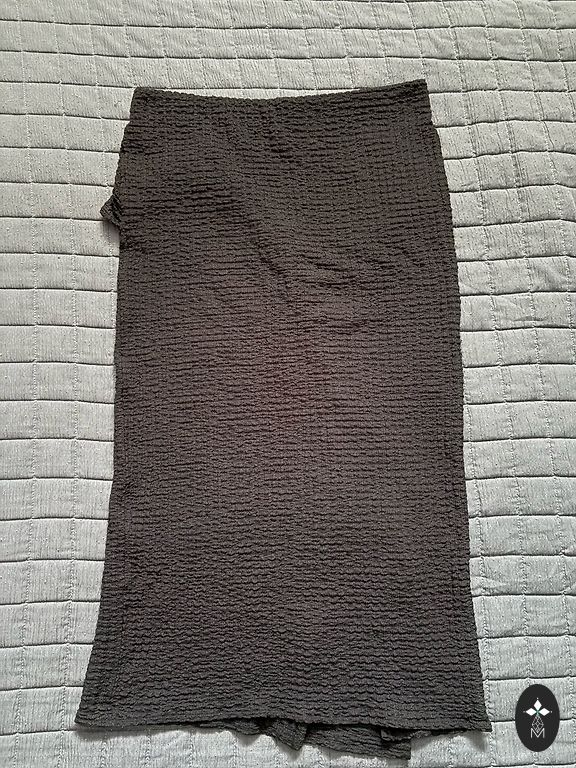 Silk-type long skirt.