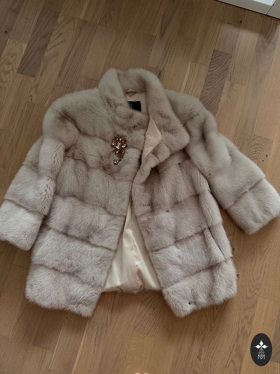 New natural mink coat. Purchased in Italy. Purchase proof receipt and tag included. Fits size S. Very beautiful beige color. Length 57cm. From one armpit to the other 52cm. Sleeve length 62cm.