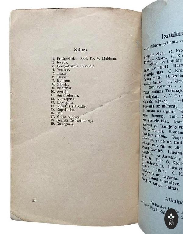 Toetused: Kordustrükki toetas Ottawas asuva Klāva Sīpoliņa fondi toetus.