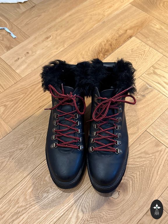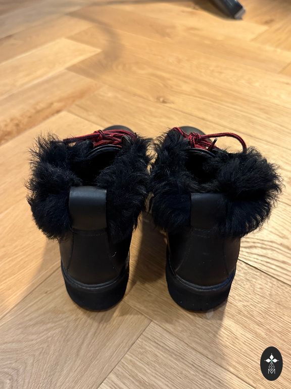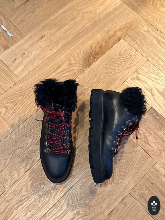 Selling winter boots that were worn once from the car to an event.