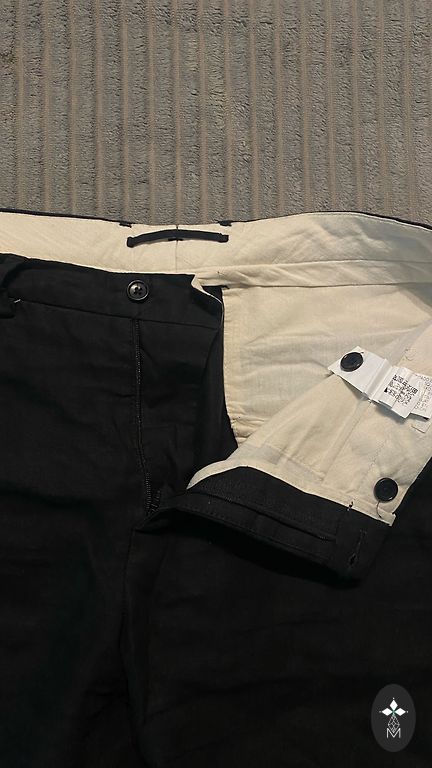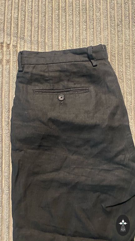 Keletas atsargių lopų kišenių srityje iš vidaus (matoma nuotraukoje). Dėvėjimui netrukdo ir vizualiai jų nematyti, bendras stovis geras.