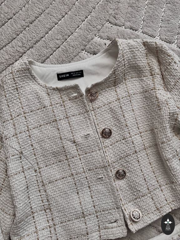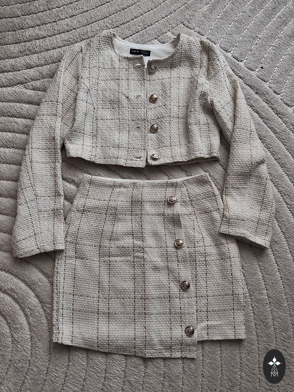 The jacket or dress can be bought separately, but it was purchased as a set. No defects.