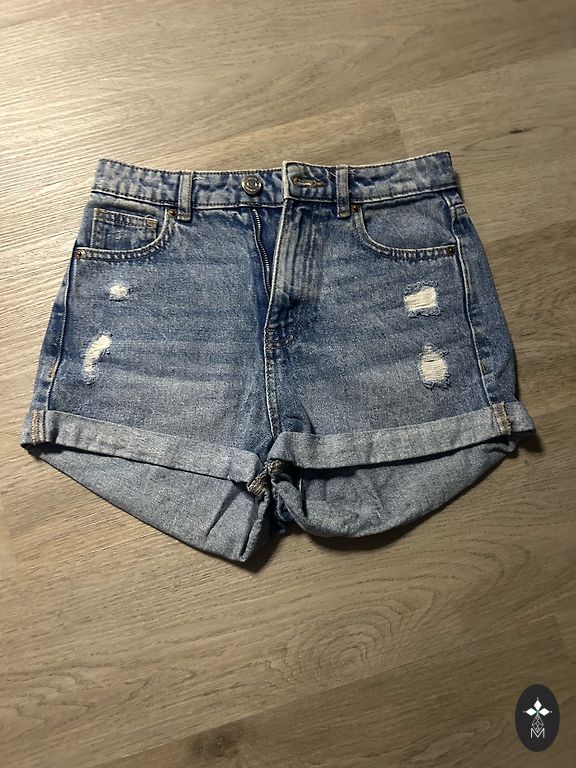 2. Šviesiai mėlyni džinsai su iškirpte ant kelio; kaina: 10€; dydis: 36