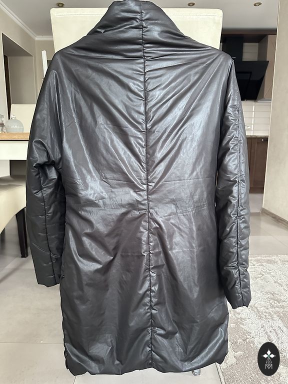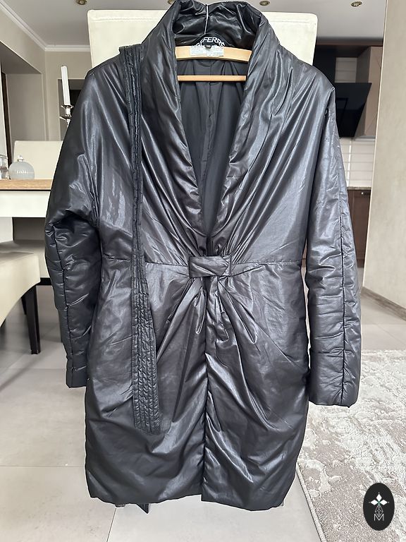 Зимнее пальто с меховым воротником.