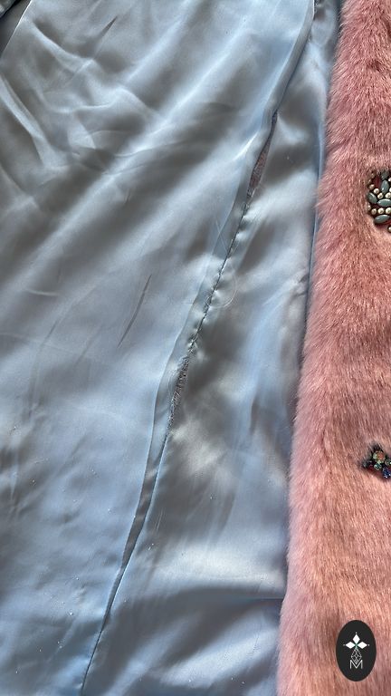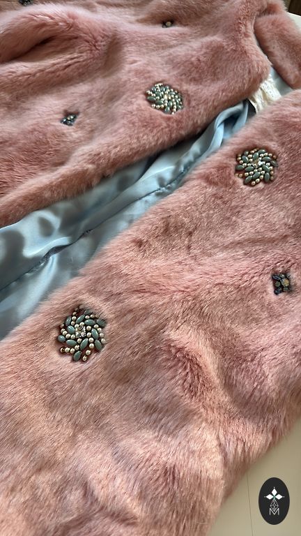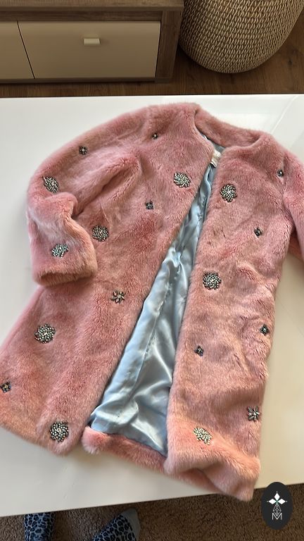 Zara dirbtinio kailio striukė. Kišenės šonuose, užsegama spaudėmis. Sudėtis: išorė 100% poliesteris; pamušalas 54% poliesteris, 46% viskozė.