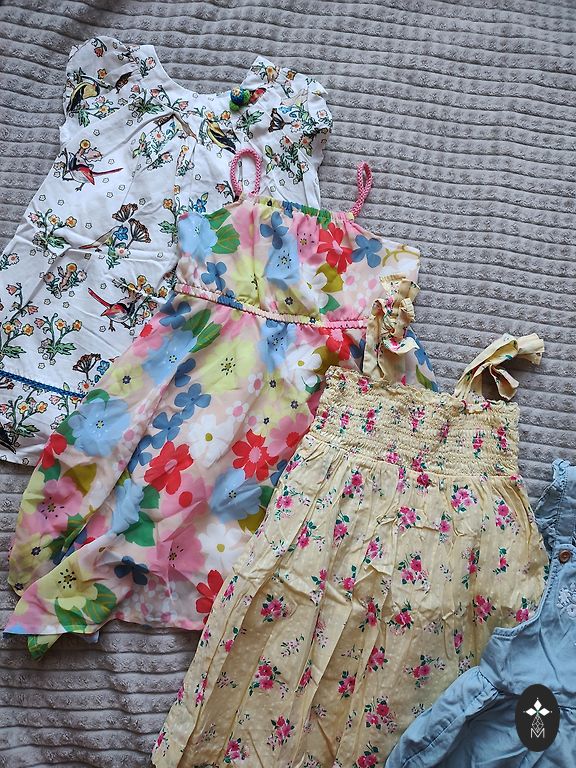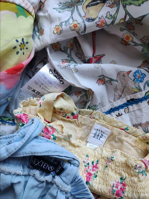 Различные платьица на лето, размер 98. В целом в хорошем состоянии, но, как и у подержанной детской одежды, возможно наличие незаметного дефекта.