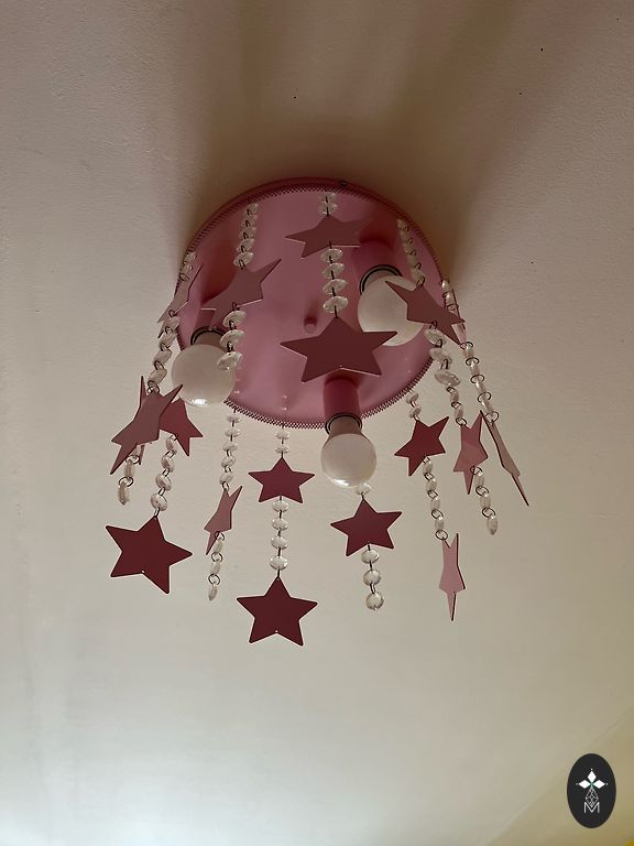 Pārdodu lietotu griestu lustru ar 5 plafoniem. Metāla korpuss melnā krāsā ar dekoratīviem elementiem, matēta stikla kupoli. Vizuālais stāvoklis labs, bez redzamiem būtiskiem defektiem.