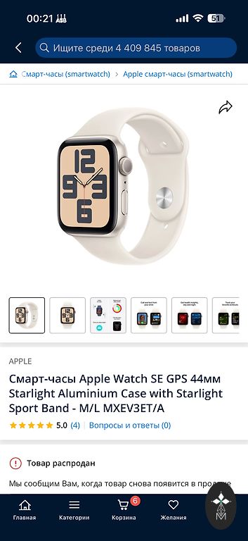 • оригинальный ремешок Apple — новый, не использовался