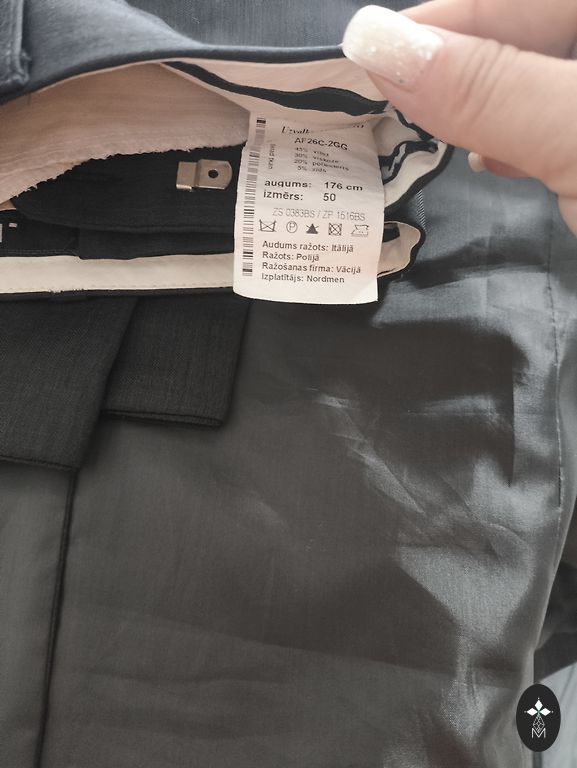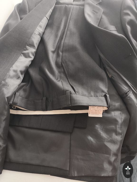 Remus Uomo kostiumas. Liemuo 84 cm. Kelnių ilgis 104 cm.