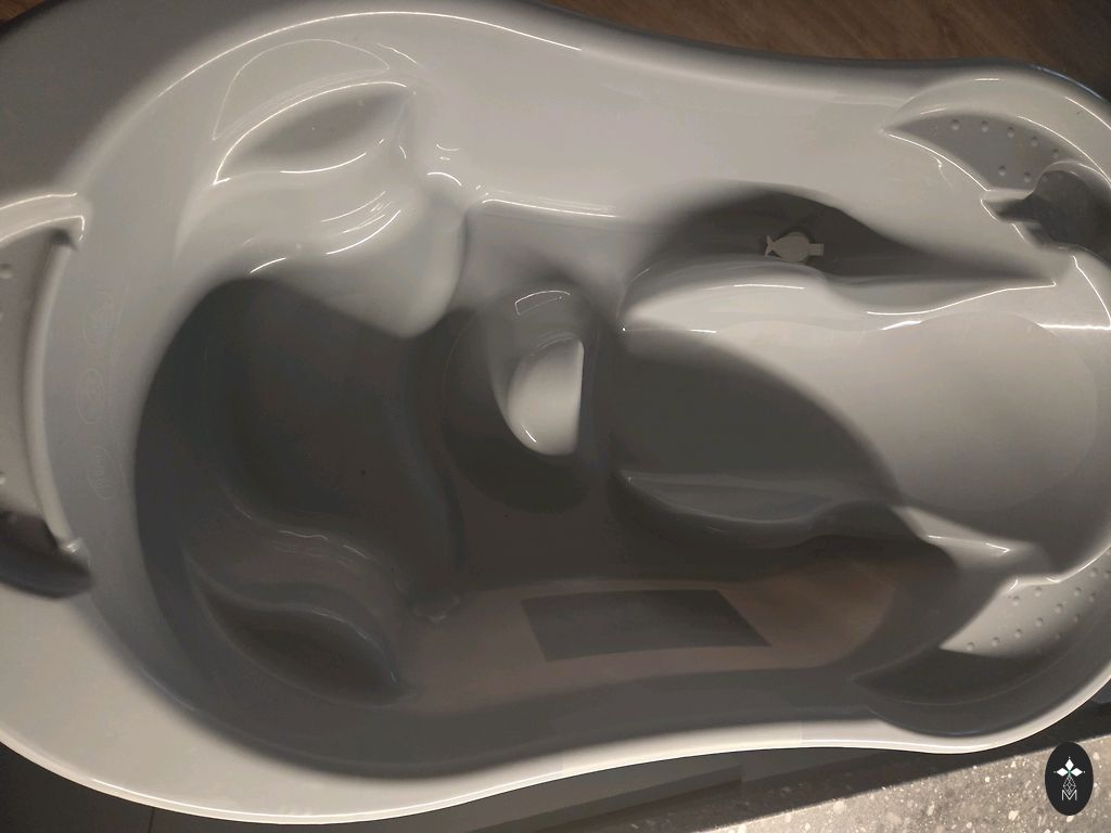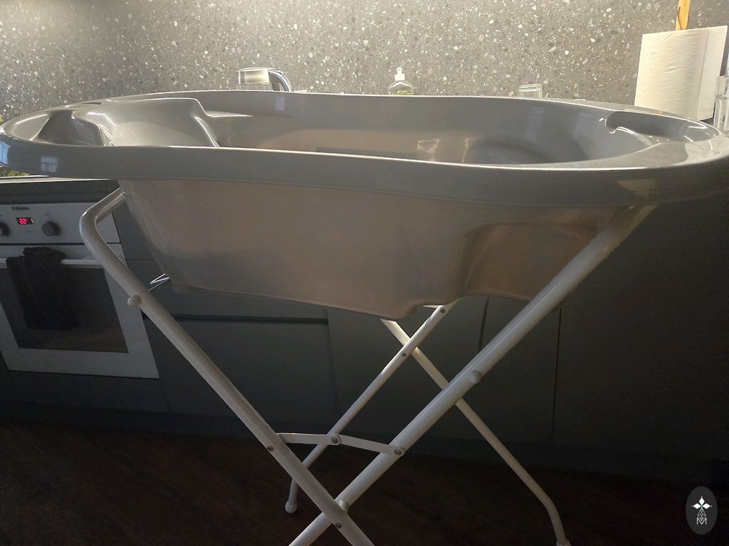 Bathtub with a stand in the bathroom