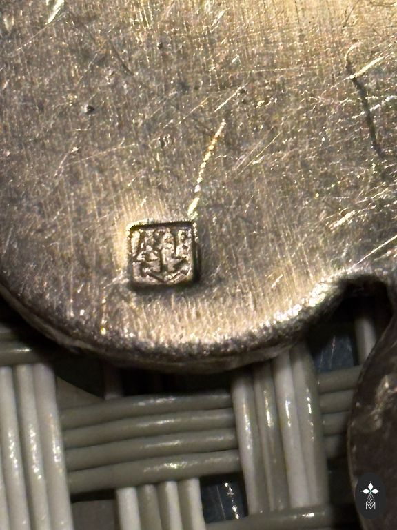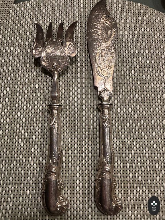 Лезвие ножа из нержавеющей стали,а ручка из мельхиора,все в идеальном состоянии. Доставку оплачивает покупатель