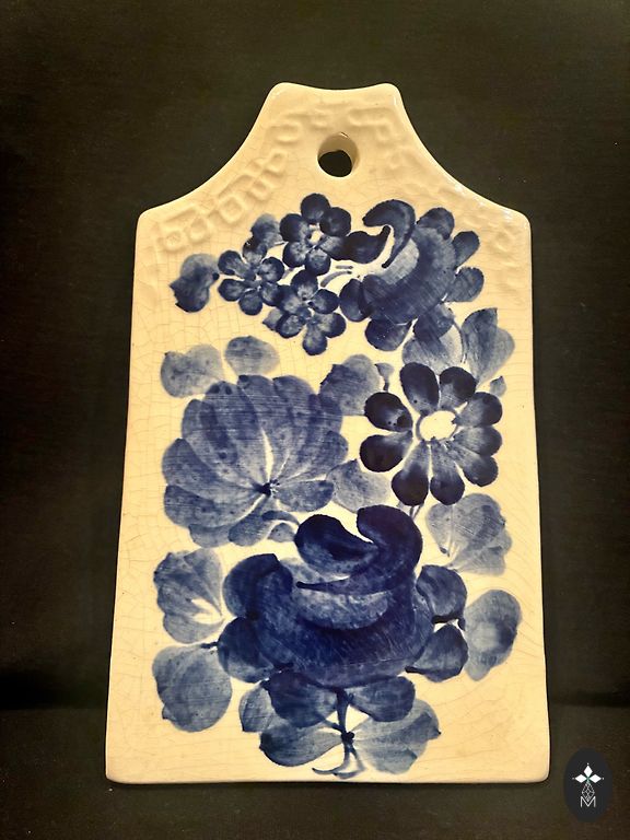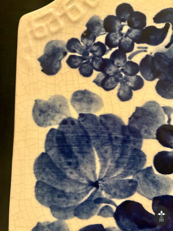 Pārdodu skaistu vintage poļu fajansa (keramikas) dekoratīvu sienas plāksni ar bagātīgu zilu kobalta ziedu rakstu.