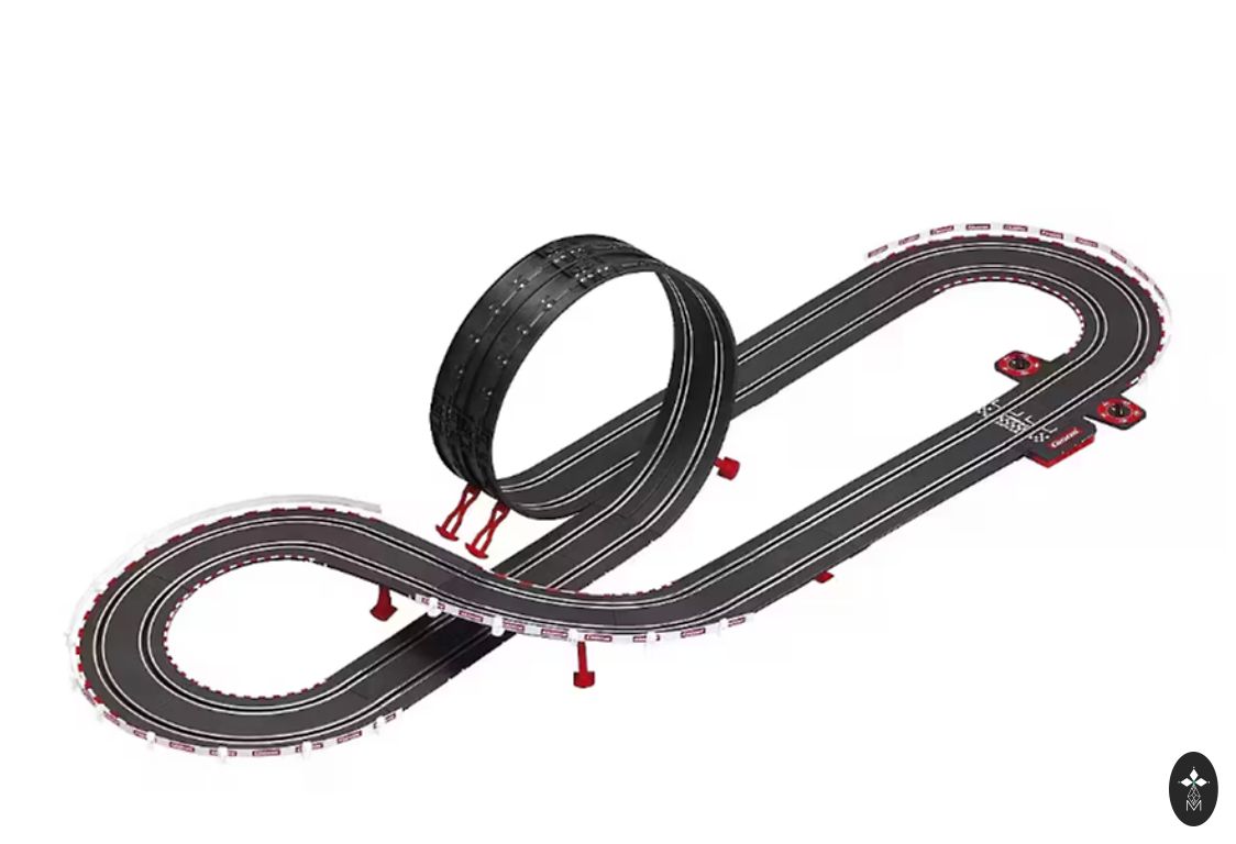 Mazlietots, ļoti labā/lieliskā stāvoklī. Jaudīga motorizēta trase ar trīskāršu cilpu, kas pastiprina kaskadieru jautrību līdz galvu reibinošam līmenim. Bērniem patiks pārbaudīt savas prasmes, vadot automašīnas pa trasi reibinošā ātrumā un mēģinot pārvarēt korķviļķa trakumu, neiznīcinot! Unikālais korķviļķa dizains nodrošina automašīnu pārvietošanos pa trasi ar maksimālo ātrumu. 3 lielātruma pastiprinātāji darbina automašīnas caur 3 neticamiem cilpām. Lai palielinātu intensitāti, izmantojiet nolaišanās rampu, lai tuvcīņā iesaistītu vairāk automašīnu. Palaidiet automašīnas tieši laikā, pretējā gadījumā tās tiks iznīcinātas vienā no 3 mežonīgajām sadursmju zonām!