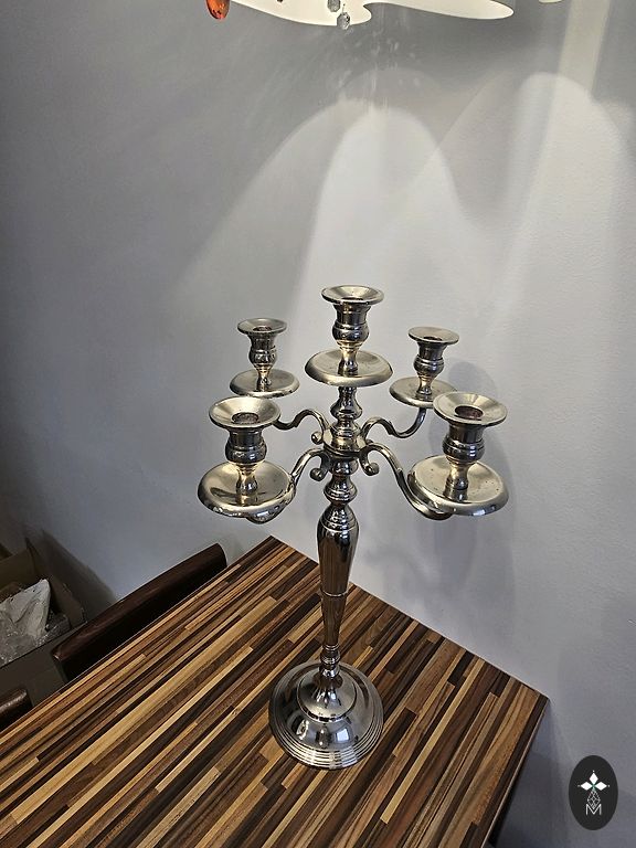2 sudrabkrāsas svečturi ar dekoriem. Augstums 19 cm, apakšā neslīdošs zamšs. Varētu būt ražoti 70-80 gados. Vienam kātiņā nedaudz nobrāzies pārklājums. Cena norādīta par abiem. Dāvanā sveces.