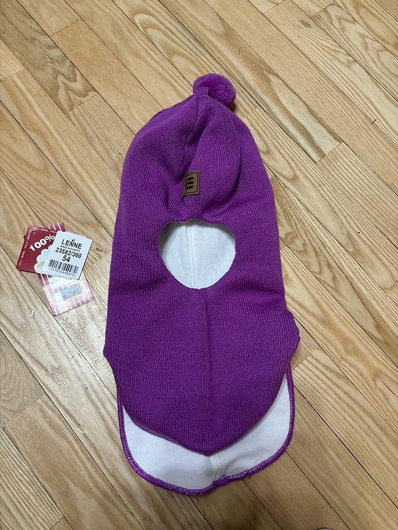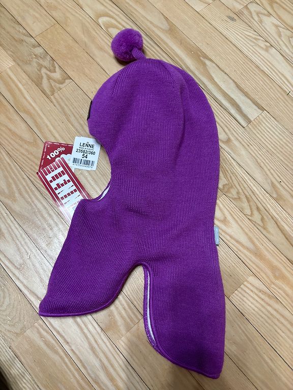 Tumesinine meriinovillane kiivrimüts. Ostetud uus eelmisel talvel, kandnud üks laps vähem kui hooaja. Ainus miinus on see, et sisse on kirjutatud initsiaalid. Sobib 5-6-aastasele lapsele.