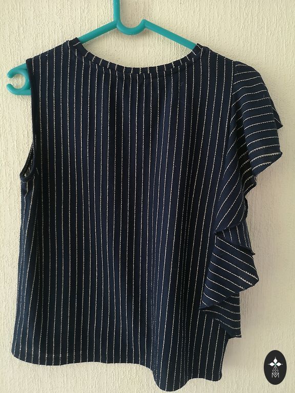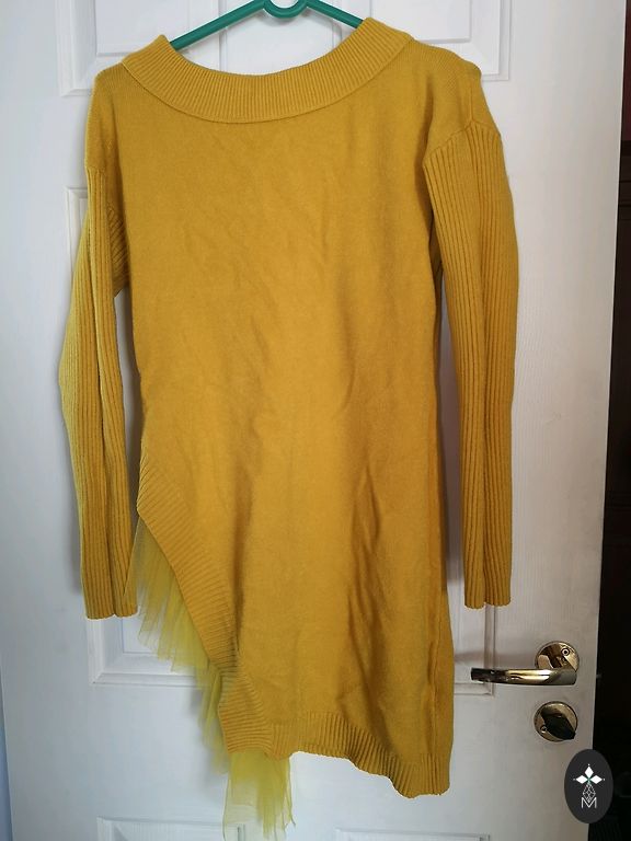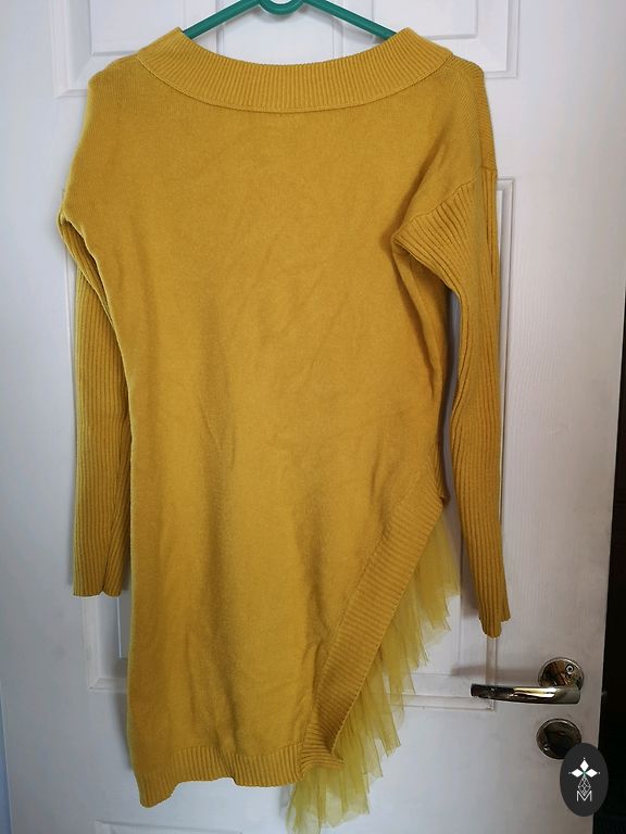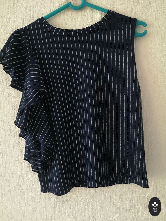 Nedėvėtas, bet kurį laiką stovėjo spintoje. Dydis s/m, ilgis 44 cm, plotis 54 cm, viršuje prie pažastų platesnis, laisvo kirpimo. Kraštai atrodo kaip atsirišę siūlai, taip numatyta.