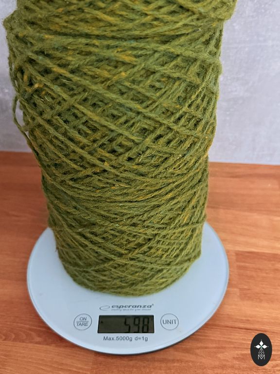 Krāsa koši zaļa, foto izskatās nedaudz gaišāka, blāvāka. Metrāža 900m/100g.