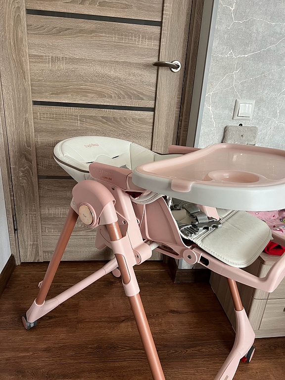 Naujas, be defektų. Labai gera ir patogi kėdė nuo 4 mėnesių. Galima reguliuoti tiek poziciją - nuo gulėjimo iki sėdėjimo, taip pat aukštį. Kėdė turi ratukus, labai patogu perkelti po namus su mažyliu, o ratukus galima užfiksuoti.