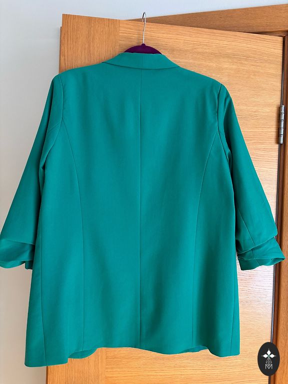 Krūtinė 57 cm, liemuo 50 cm. Rankovė 63 cm.