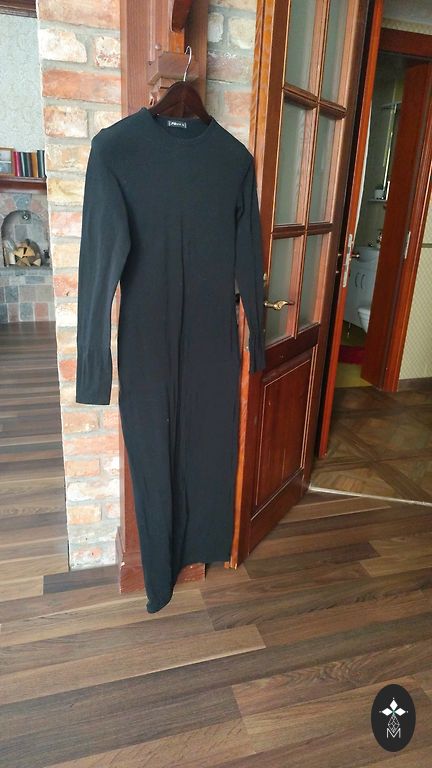 Suknelė su gražiu kritimu, pabrėžia liemenį. Yra dirželis, reikia persiūti diržo kilpas. Visas priekyje užsegama sagomis.