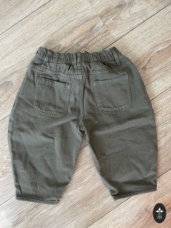 Jauns krekla un bikšu komplekts uz 18 mēnešu izmēru tumši zaļā krāsā (kamera toni nav noķērusi). Nepaguvām uzvilkt. Norāde uz cenu zīmes par trīsdaļīgu, bet ir šīs divas daļas.