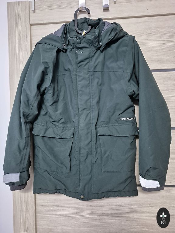 Pārdod siltu virsjaku. Trūkums ir viens plečis pie piedurknes.
