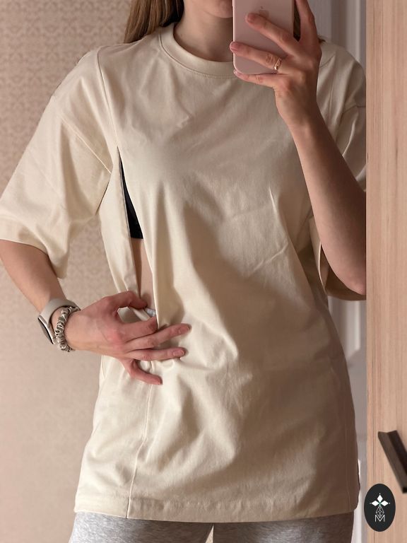 100% medvilnės oversize marškinėliai maitinimui. M ir L dydis.