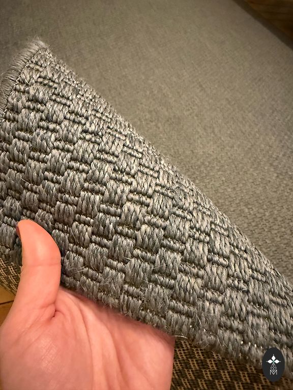 Aukštas pluoštas - kilimas yra maloniai minkštas, labai patogu vaikščioti basomis. Kilimas maksimaliai išvalytas namų sąlygomis su dulkių siurbliu ir pūkuotas. Kadangi patys neturime tokios galimybės, naujam savininkui rekomenduočiau jį dar kruopščiai išmušti lauke.