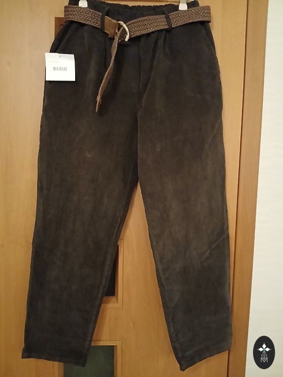 Plataus stiliaus kelnės. Nenešiotos. Lengvas medžiagos, labai gerai priglunda prie kūno. Ne itin permatomos, medžiaga nėra per plona – kojos atrodo gerai. Mano viršutinė dalis yra siauresnė ir celiulitas nesimato :)