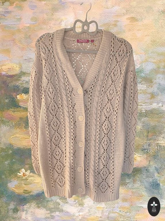Length 72cm, width under the armpits 56cm, sloping shoulders, sleeve together with shoulder 69cm.