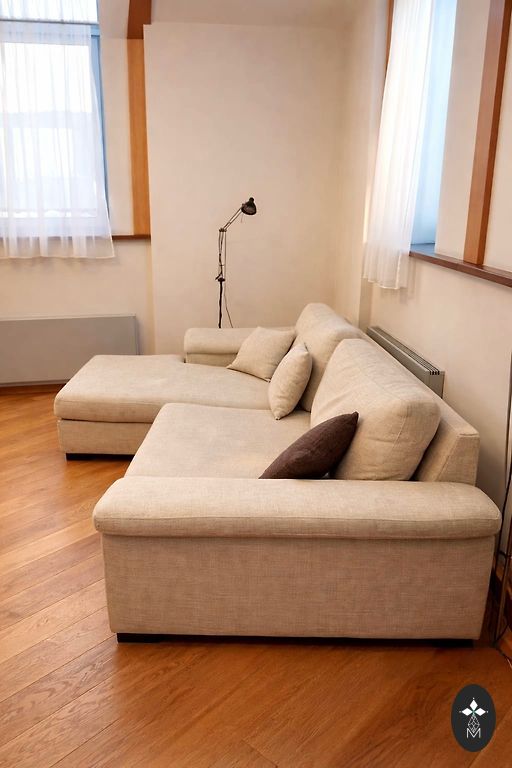 Corner sofa with a folding sleeping area of 210 × 150, includes a storage box. I will also give away a table on wheels with the sofa. Pickup from the 7th floor. Plavnieki. Urgent.