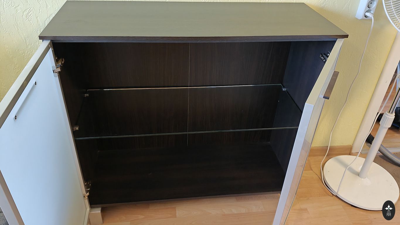 Sakarā ar mājokļa "atsvaidzināšanu", tiek pārdota kumode (melnā kumode tikai labākam ieskatam, pārdodu kumodi ar baltu akcentu) Ir pieejams arī viss viesistabas komplekts - TV gads, plauktiņš un lielie plaukti - foto manā profilā.