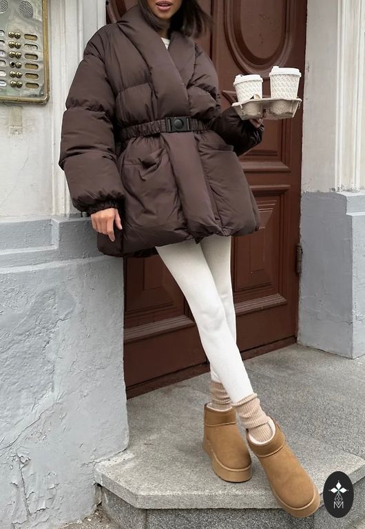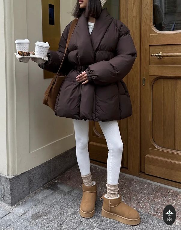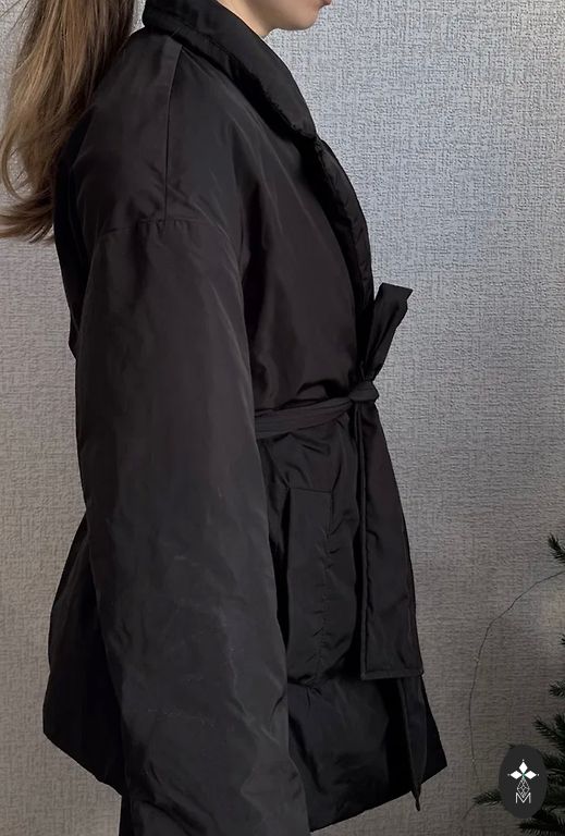 Tumši brūna jaka ar elastīgu apakšmalu un piedurknēm. Noņemama mākslīgās kažokādas apkakle. Aizdare ar rāvējslēdzēju.
