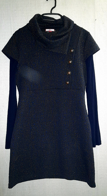 Parduodu šiltą, apimtą Cos suknelę. 100% vilna. Iš trūkumų dešinės rankos alkūnės srityje truputį nusitrynusi vilna, matoma nuotraukoje. Tačiau kadangi suknelė yra apimta, užlenkus rankoves viršuje to visai nepastebėsite. Arba nuėjus pas siuvėją, tai galima sutaisyti.