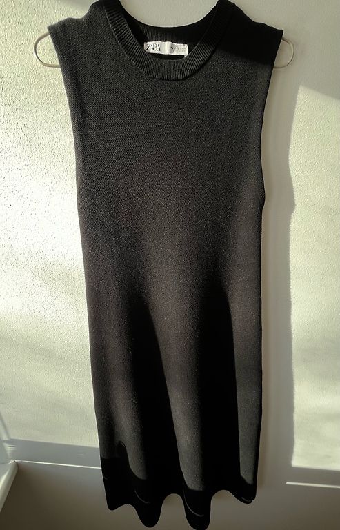 Väga stiilne must-beež midi kleit Zara'st. Tihe, kvaliteetne trikookangas - ilusti sobib ja salendab figuuri.