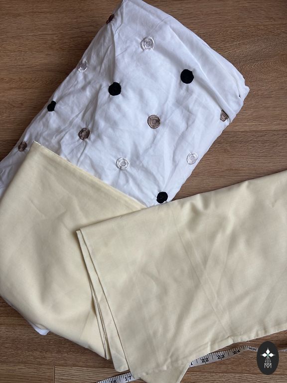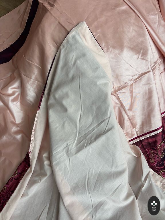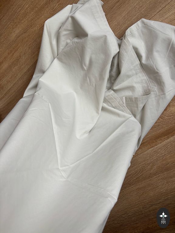 Noradits L, ieteiksu m. Garums 113 cm, Viduklis 38x2 cm, krutis 50x2 cm. Sanos kabatas , apakssvarki, prieksa divi skelumi . Loti skaista, gaisiga kleita.