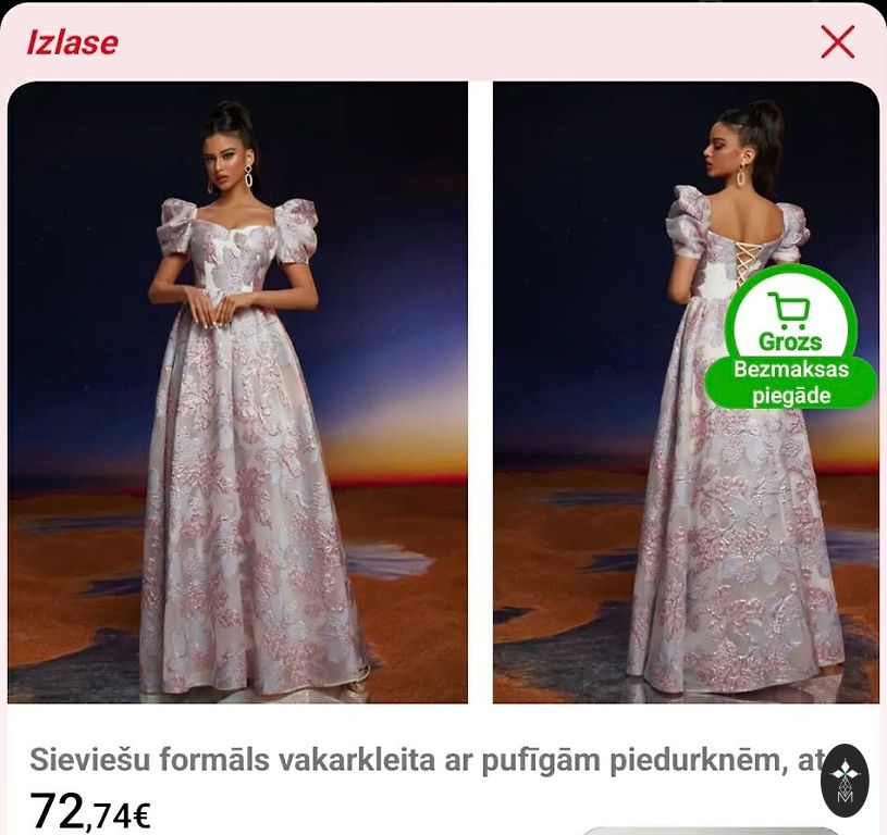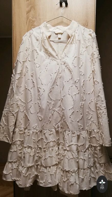 Norādītais izmērs ir 40, bet, manuprāt, tā labāk derēs M izmēram. Kleita ir tikai pielaikota — ideālā stāvoklī. Diemžēl nesadraudzējos ar garumu, tāpēc kleita meklē jaunu saimnieci 🤍