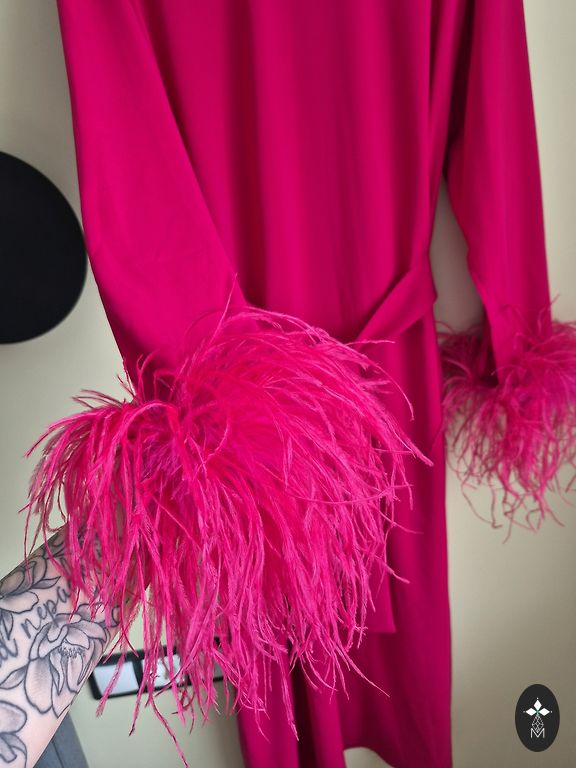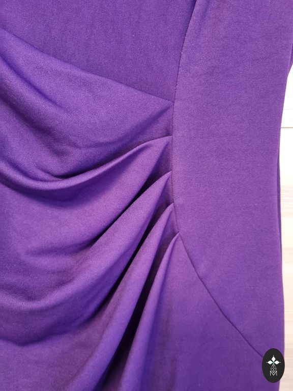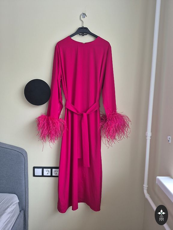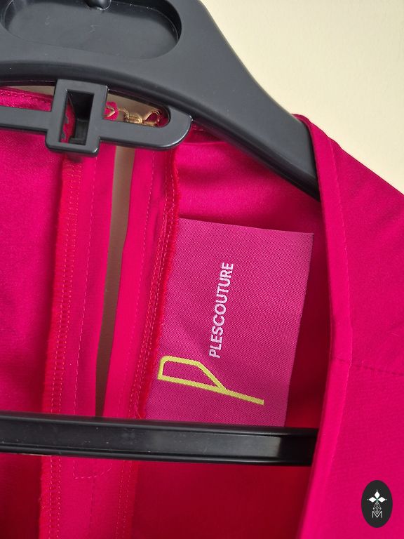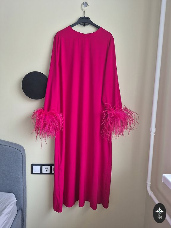 Siūta. Raišteliai ant pečių iš aksomo audinio. Platus/pūstas apatinis kraštas ir pailginta nugara. Dėvėta tik 1 kartą.