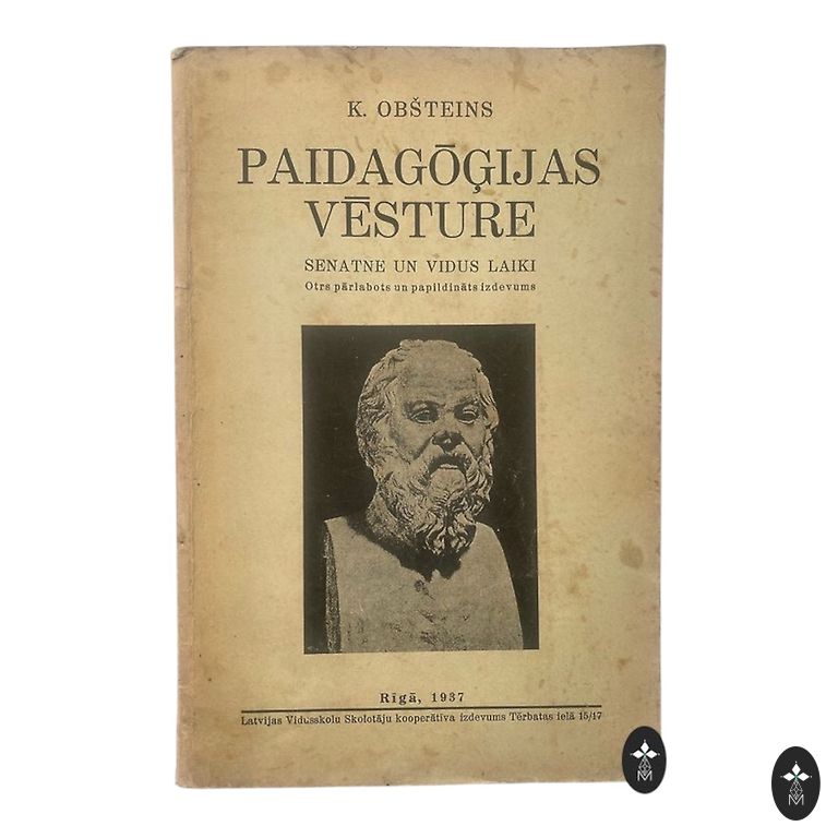 (Paidagoģijas vēsture) K. Obšteina, kas koncentrējas uz senās un viduslaiku izglītību un ietver grieķu filozofa Sokrāta portretu.