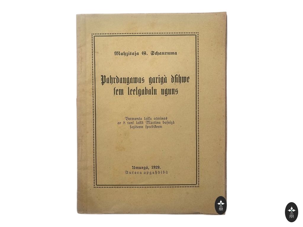 Pārdaugavas garīgā dzīve zem lielgabalu uguns" (Spiritual Life of Pārdaugavas under Cannon Fire) by Pastor G. Schaurum, published in 1929 in Umurga.