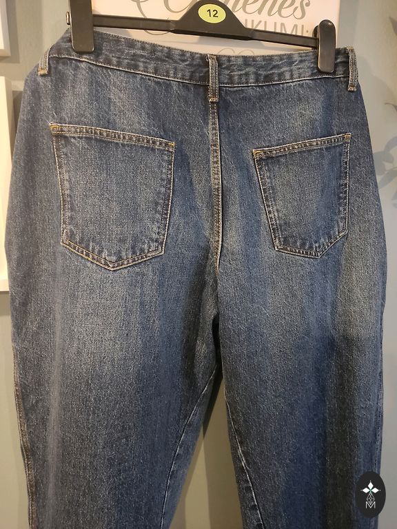 Džinsiniai kelnės su aukštu juosmeniu. Sudėtis 98% medvilnės, 2% elastano