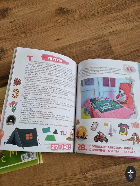 Книга содержит иллюстрации персонажей комиксов Дональда Дака, Микки и других, которые помогают изучать английский язык (слова и тексты переведены на английский, латышский и русский языки). Книга большого формата с твердым переплетом.