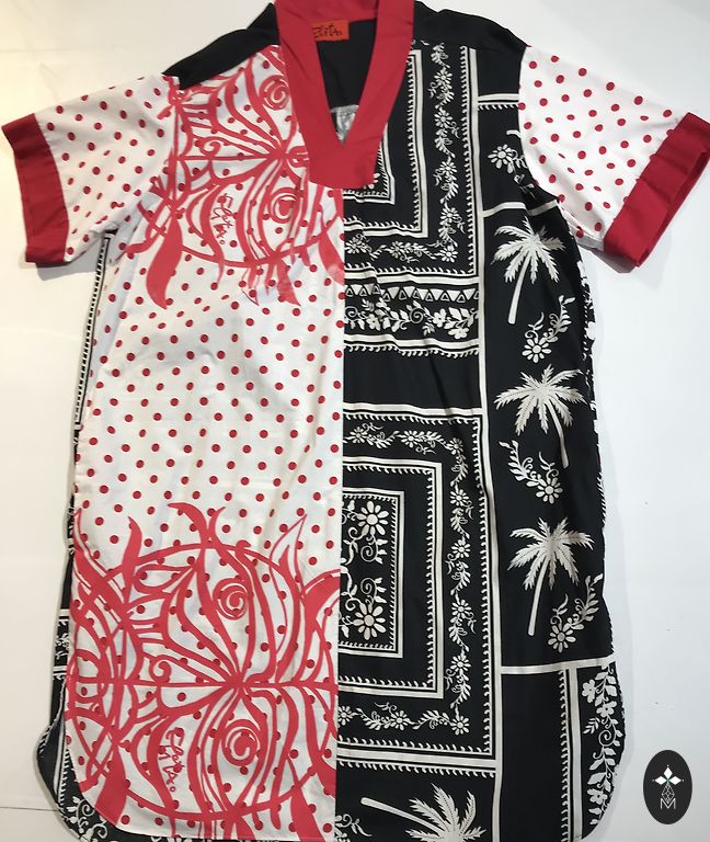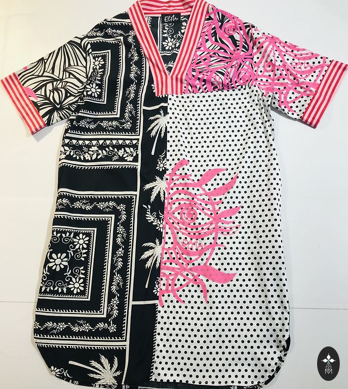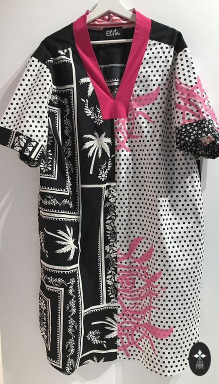 Damos, kurios laukia vasaros arba ruošiasi į šiltus kraštus, gali patikti ši suknelė jūros tonais. Lino ir medvilnės audinių derinys. Šviesiai mėlynas lino audinys turi originalius piešinius šilkografijoje. Audiniai nėra ploni - suknelę su švarkeliu ar striuke galima dėvėti ir vėsesnėmis dienomis. Šiltoms dienoms - be rankovių viršus - krūtinės apimtis iki 114 centimetrų, nuo krūtinės žemyn suknelė išplatinta, puošni - volanas apačioje yra 4 metrai. Suknelė yra pusilgė - 117 cm. Perlas praktiškai naujas - sutvarkytas ir laukia savo perlų medžiotojos.