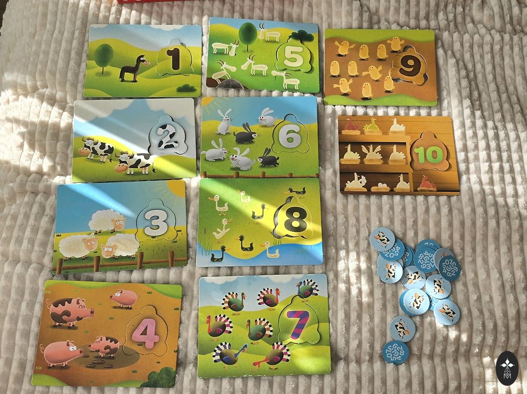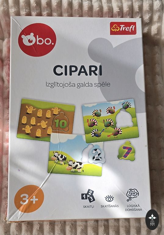 Продаем комплект, использованный, картонные пазлы немного потёрты, иначе всё в порядке. Электрическая вещь "говорит" на латышском языке.