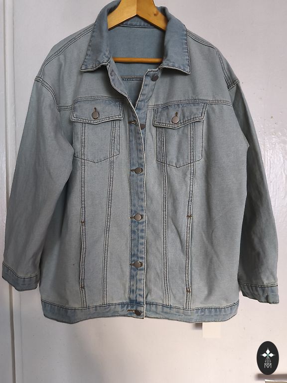 Per didelis džinsinis švarkas su diržu