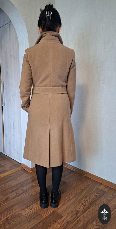 Ļoti ērts, lai arī pusgarš mētelis, jo gan priekšpusē veidojas šķēlums, gan mēteļa aizmugurē ir iestrādāts šķēlums.