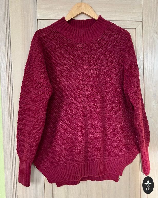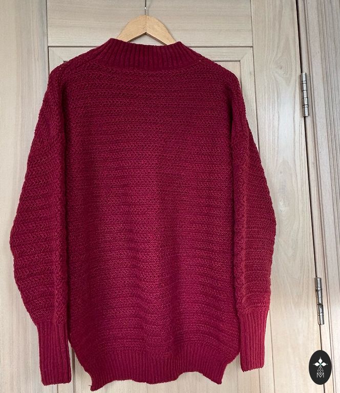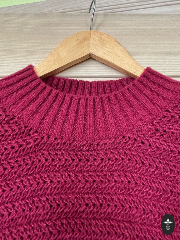 Fuksijas krāsa ar sarkanu apdari. Pogas ar akmentiņiem. Pirku T/C Spice. Uzvilku vairākas reizes. Lietošanas pazīmju nav. Garums 68 cm. Platums 52 cm. Piedurkne no pleca 60 cm. Noteikti zinu, ka 100% kašmirs. Etiķetes nav, bet kvalitāte runā pati par sevi. Jāpārdod, jo mainījies izmērs.