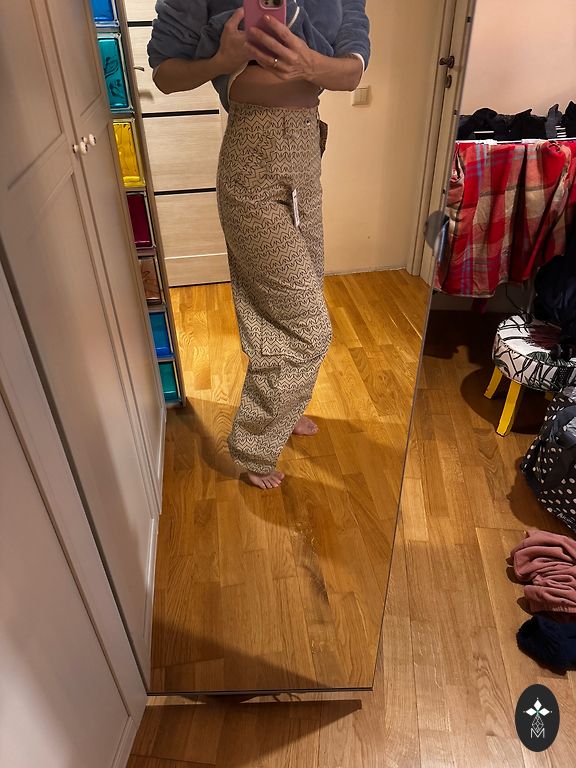 Biezāka, kvalitatīva auduma. Ļoti patīkamas, ar vieglu siltinājumu iekšpusē.