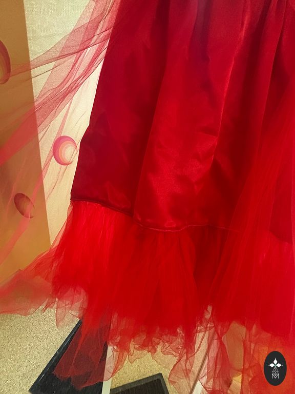 Vecrozā, gara, kupla svinīga kleita. Garums 113cm, viduklis 2*36cm.